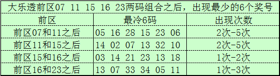 前区冷码统计:大乐透第25136期前区奖号为:07、11、15、16、23,截止第25136期历史上大乐透已经开出了2804期奖号了,在连续两码奖号中: