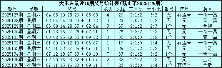 大乐透第2025136期奖号为:07、11、15、16、23+09、11。其中前区三区比为2:3:0,大小比为1:4,包含1个重号,包含连号,后区为全奇号码。
