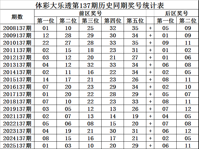王守礼体彩大乐透第2025137期历史同期定位升重降号码分析: