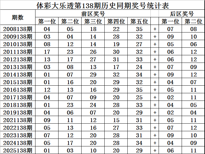王守礼体彩大乐透第2025138期历史同期定位升重降号码分析: