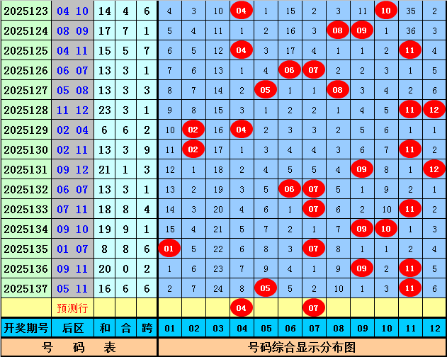 前区龙头:上期龙头开出07,近期开出频率较高,前10期龙头分布在1-7区间,小 号龙头表现非常活跃,本期预计龙头继续在前端热出,关注龙头号码01。