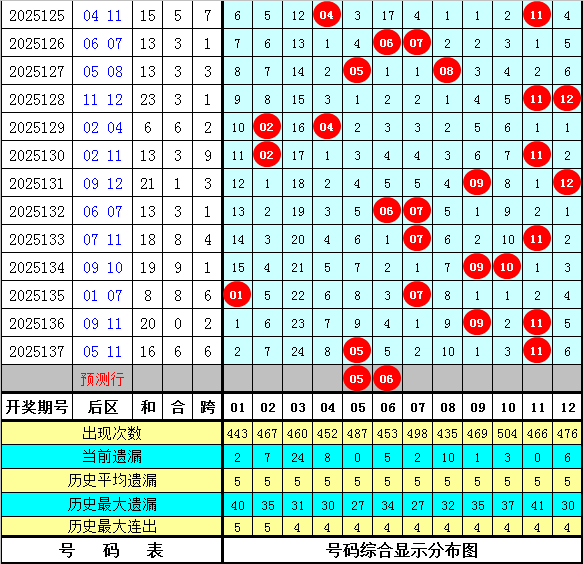 在历史同期开奖中,后区号码和值奇偶为10:6,其中奇号和值走势活跃,本期防奇号和值再次出现,关注和值11。