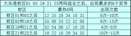 前区两码01和03和之后表现最热的6个号码为:12、25、28、34、18、31;