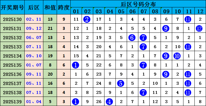 后区分析:上期开出小小奇偶组合01、04,前十期后区大小比为15:5,大数号码相对热出,其中小大组合占4期。本期预计小大组合出现,后区推荐号码06、10。