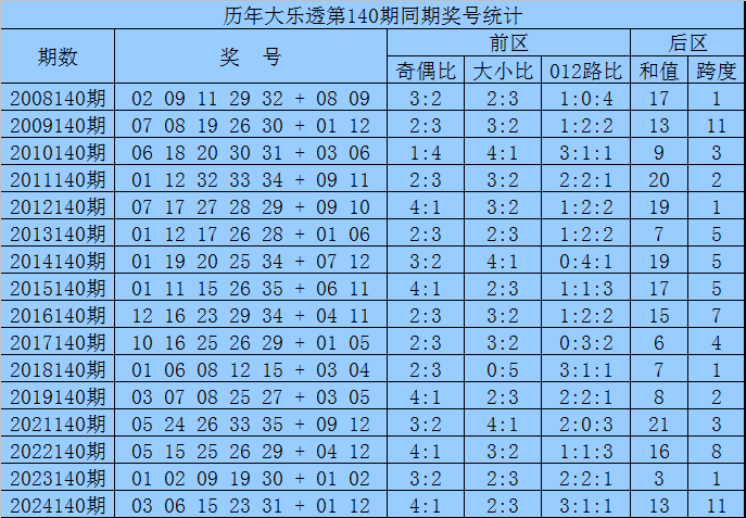 袁军师体彩大乐透第2025140期历史同期奖号分析: