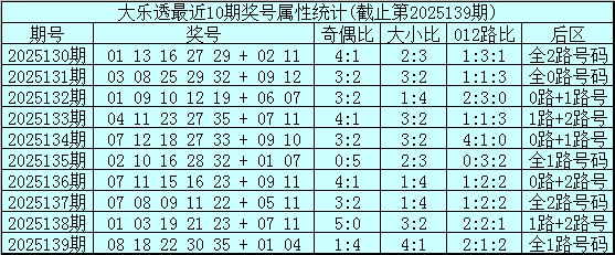 姚天罡大乐透第2025140期奖号分析:
