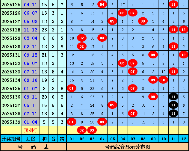 后区上期开出奖号01和04,该组合历史上出现了34次,其下期奖号频次分别为:号码01、06出现8次,04、10出现7次,03、09、12出现6次,05出现5次,02、11出现4次,07出现3次,08出现2次,本期后区参考号码01、02、03、05,精选两码02和03。