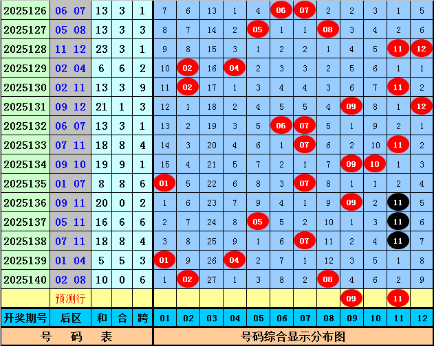 后区分析:上期后区开出号码02和08,最近10期后区奖号奇偶比为14:6,大小比为14:6,本期后区看好号码04、06、09、11、12,后区单挑两码09、11。