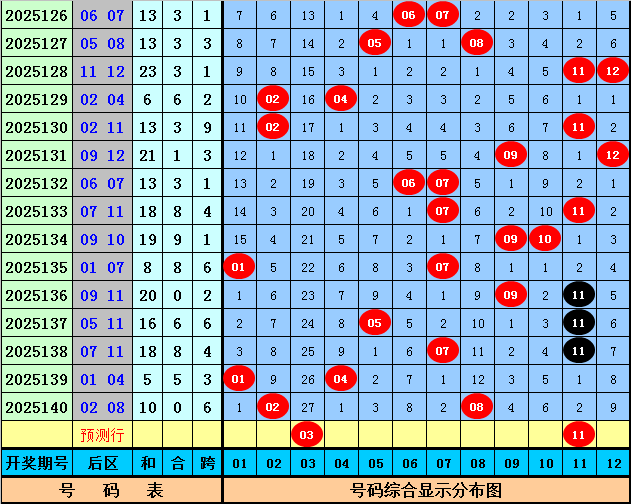 后区分析:上期后区开出两码02和08,分别遗漏了9期和12期,最近10期后区奖号大小个数比为14:6,奇偶个数比为14:6,本期后区注意号码01、03、04、11、12,精选两码03、11。