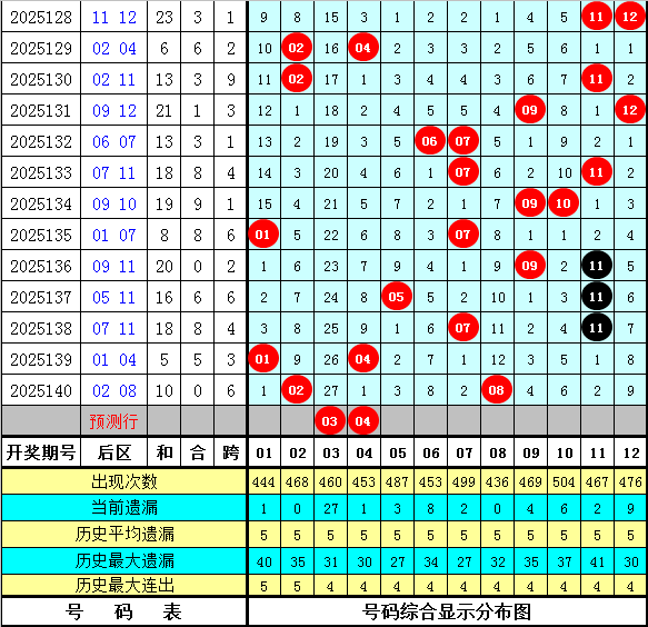 石浩第2025141期大乐透后区分析:后区上周星期三后区奖号为07和11,上期开出奖号02和08,最近9周星期三与最近9期后区奖号大小比分别为8:10和12:6,奇偶比分别为10:8和13:5,本期预计后区开出全小组合。注意号码03、04、05、06。