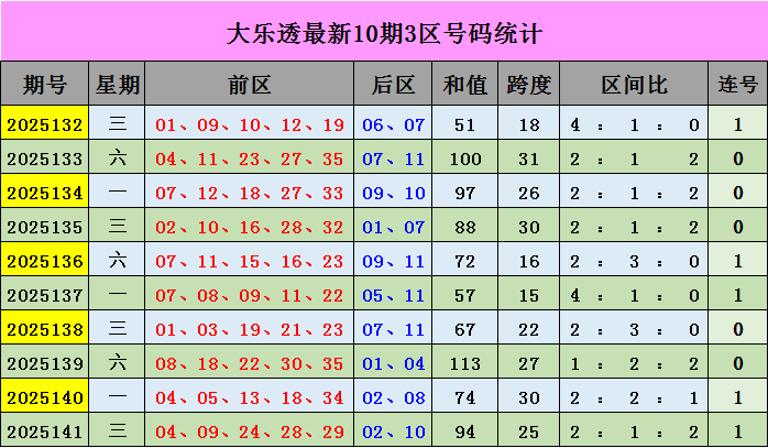 后区开出号码02、10落在1、3区。最近50期,一区(1-4)开出号码30个,二区(5-8)开出号码36个,三区(9-12)开出号码34个,2、3区号码较热,1区较温,本期推荐关注:01、07