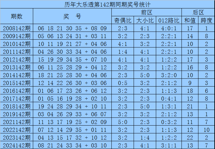 袁军师体彩大乐透第2025142期历史同期奖号分析: