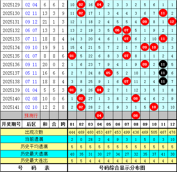 后区判断:上期后区奖号为02和10,开出热码+温码组合。最近十期后区开出11个热码、6个温码和3个冷码,本期预计奖号关注热码+热码组合,参考两码04、08。