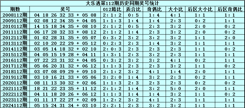 体彩大乐透第2025112期历史同期开奖号码分析: