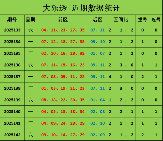 连号分析:上期开出连号09 10。近10期有5期开出连号,5期未开出连号,连号出现次数较少,本期预计不会开出连号。