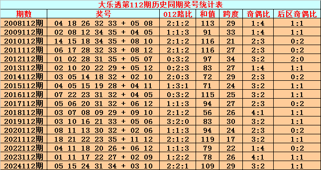综上所述,大乐透第2025112期前区012路比参考3:1:1。