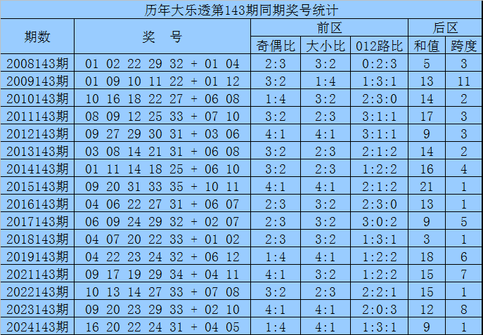 袁军师体彩大乐透第2025143期历史同期奖号分析: