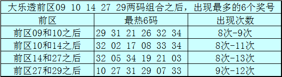 前区两码09和10和之后表现最热的6个号码为:29、31、21、26、32、34;