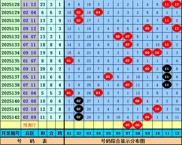 三少第2025143期体彩大乐透后区尾数分析:上期后区开出奖号02和09,奖号尾数为2路和0路,本期后区排除0路尾数号码,五码参考02、04、07、08、09。
