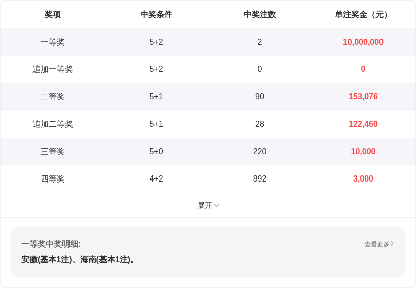 | 期号 | 开奖号码 | 第一位 | 第二位 | 第三位 | 第四位 | 第五位 |