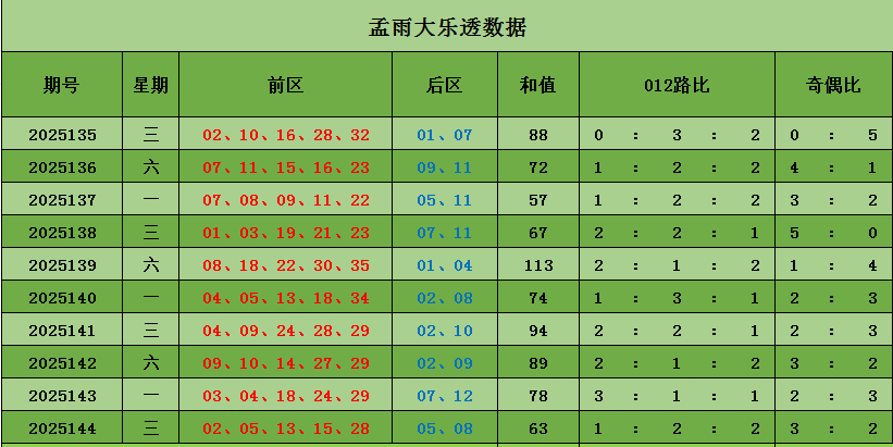 孟雨大乐透本期推荐: