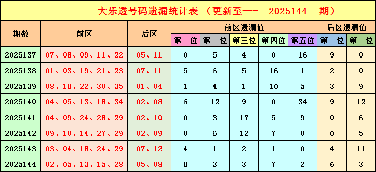 前区热号分析(0-3):上期热号出现在第一、二、三区,开出3个05、13、28,热码出号相对较热;最近8期热号有17个,热号出号相对较多。本期热码参考03、10。
