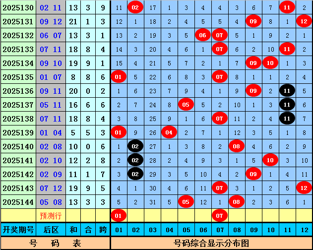 三少第2025145期体彩大乐透后区尾数分析:上期后区开出奖号05和08,为全2路尾数奖号,本期后区排除0路尾数号码,五码参考01、04、05、07、11。