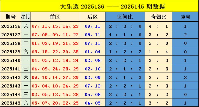 后区分析:上期开出小小偶奇组合04、05,前十期后区大小比为12:8,大数号码相对热出,其中小大组合占5期。本期预计小大组合出现,后区推荐号码03、07。