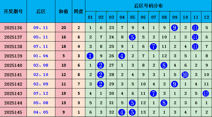 后区第二位:前10期开出奖号:其中奇数号码开出5次,偶数号码开出5次,奇偶走势奇偶数均等,本期注意偶数号码出现。参考号码:10。