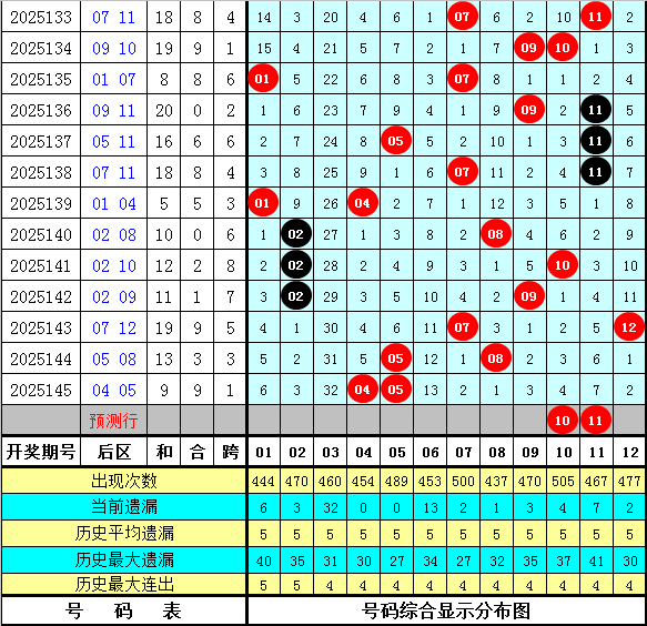 和值跨度:上期和值开出79,对比第2025144期和值上升了16个点位,本期看好和值走小,关注小 号区域和值,预计在79附近。