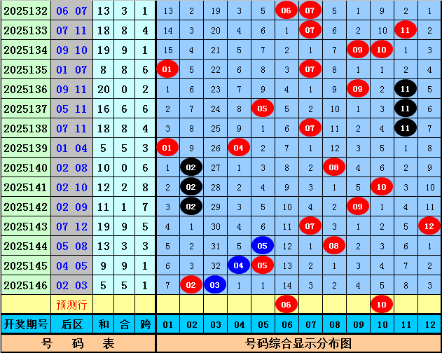周横大乐透第2025147期号码推荐: