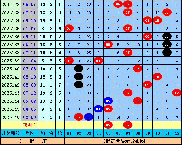 后区分析:上期后区为一奇一偶号码02+03,最近10期后区号码奇偶比为10:10,最近50期后区奇偶比为46:54,本期后区看好全奇组合,参考号码05、07。