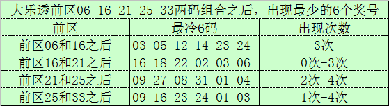 前区冷码统计:大乐透第25147期前区奖号为:06、16、21、25、33,截止第25147期历史上大乐透已经开出了2815期奖号了,在连续两码奖号中: