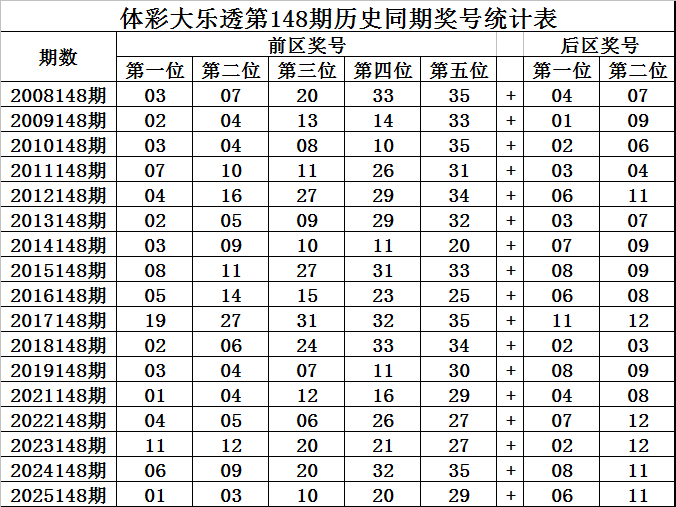 王守礼体彩大乐透第2025148期历史同期定位升重降号码分析: