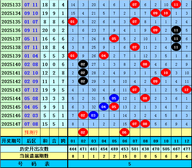 后区五码推荐:02、04、06、10、11