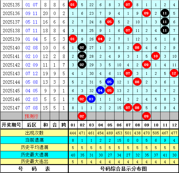 在历史同期开奖中,后区号码和值奇偶为9:7,其中奇号和值走势活跃,本期防奇号和值再次出现,关注和值11。