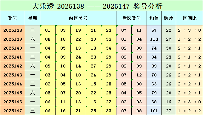 后区综合分析:上期后区号码为大大奇偶组合。