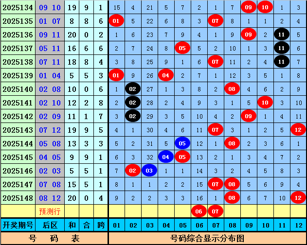 后区分析:在第149期历史同期开奖中,后区奖号一奇一偶出现9次,全奇出现4次,全偶出现3次,今年第149期后区预计出现一奇一偶组合,看好两码06和07。