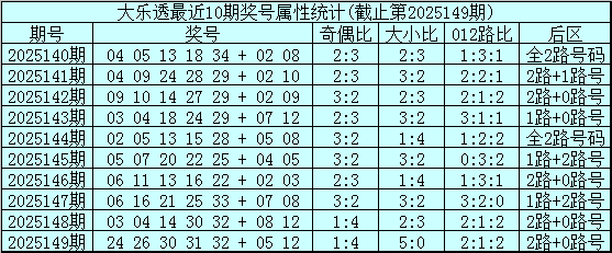 大乐透第2025149期开奖号码:24 26 30 31 32 + 05 12。前区奖号大小比为5:0,奇偶比为1:4,012路比为2:1:2,后区为2路+0路号。