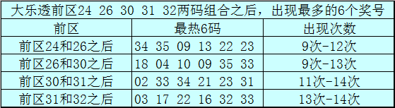 前区两码24和26和之后表现最热的6个号码为:34、35、09、13、22、23;