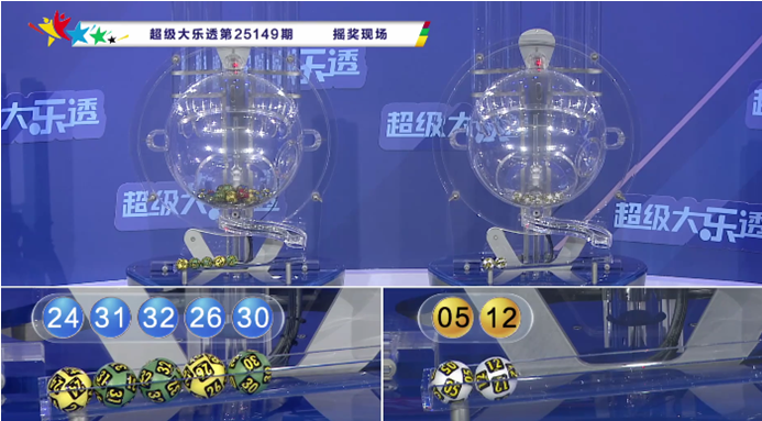 上期开奖:体彩大乐透第2025149期开奖号码为:24 26 30 31 32 + 05 12。