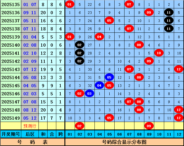 后区分析:在第150期历史同期开奖中,后区奖号全奇出现7次,全偶出现2次,一奇一偶出现7次,今年第150期后区预计出现一奇一偶组合,看好两码02和09。