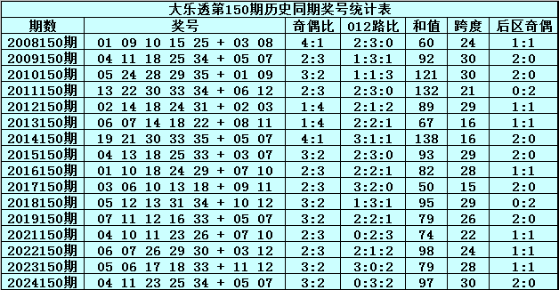 水镜体彩大乐透第2025150期历史同期奖号分析: