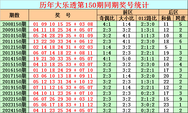 在历史同期奖号中,后区奖号跨度尾数大小比为5:11(定义:跨度1、2、3、10、11为小尾跨度,跨度4、5、6、7、8、9为大尾跨度),其中大尾跨度出现频次较低,本期防大尾跨度回补,参考跨度5。
