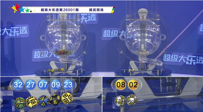 体彩大乐透第26001期奖号为:07 09 23 27 32+02 08,前区奖号012路比为2:1:2,奇偶比为4:1,大小比为3:2,后区为全2路号码。
