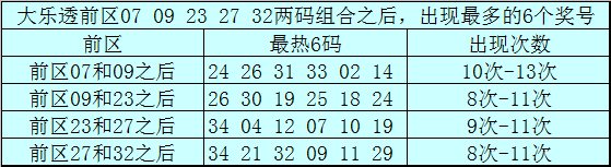 前区两码27和32和之后表现最热的6个号码为:34、21、32、09、11、29;