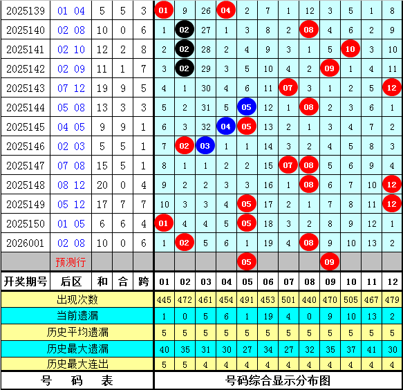 后区判断:上期后区奖号为02和08,开出温码+热码组合。最近十期后区开出11个热码、6个温码和3个冷码,本期预计奖号关注热码+温码组合,参考两码05、09。
