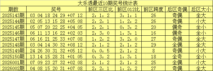 大乐透第2026002期奖号开出:04 08 15 20 31 +07 08。其中前区三区比为2:2:1,012路比为1:2:2,后区开出全大、一奇一偶奖号。
