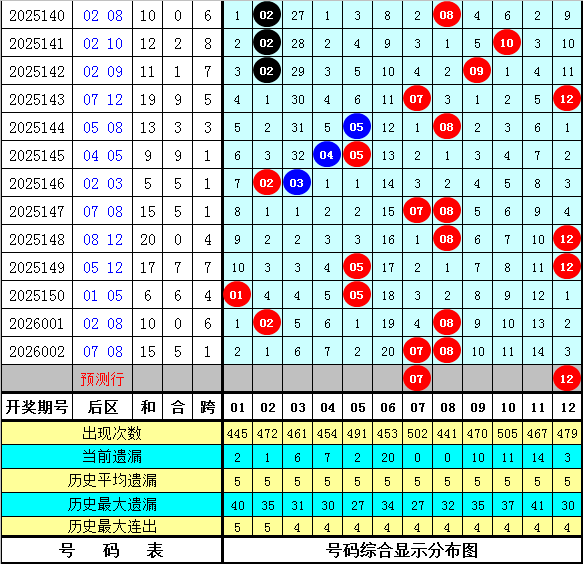 其中,前区和值为:78,和值下降了20个点位;