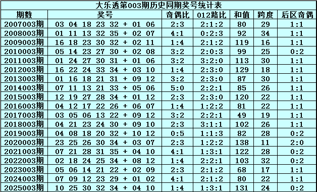 水镜体彩大乐透第2026003期历史同期奖号分析: